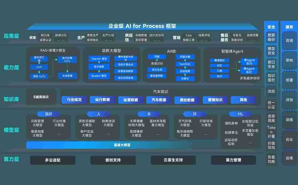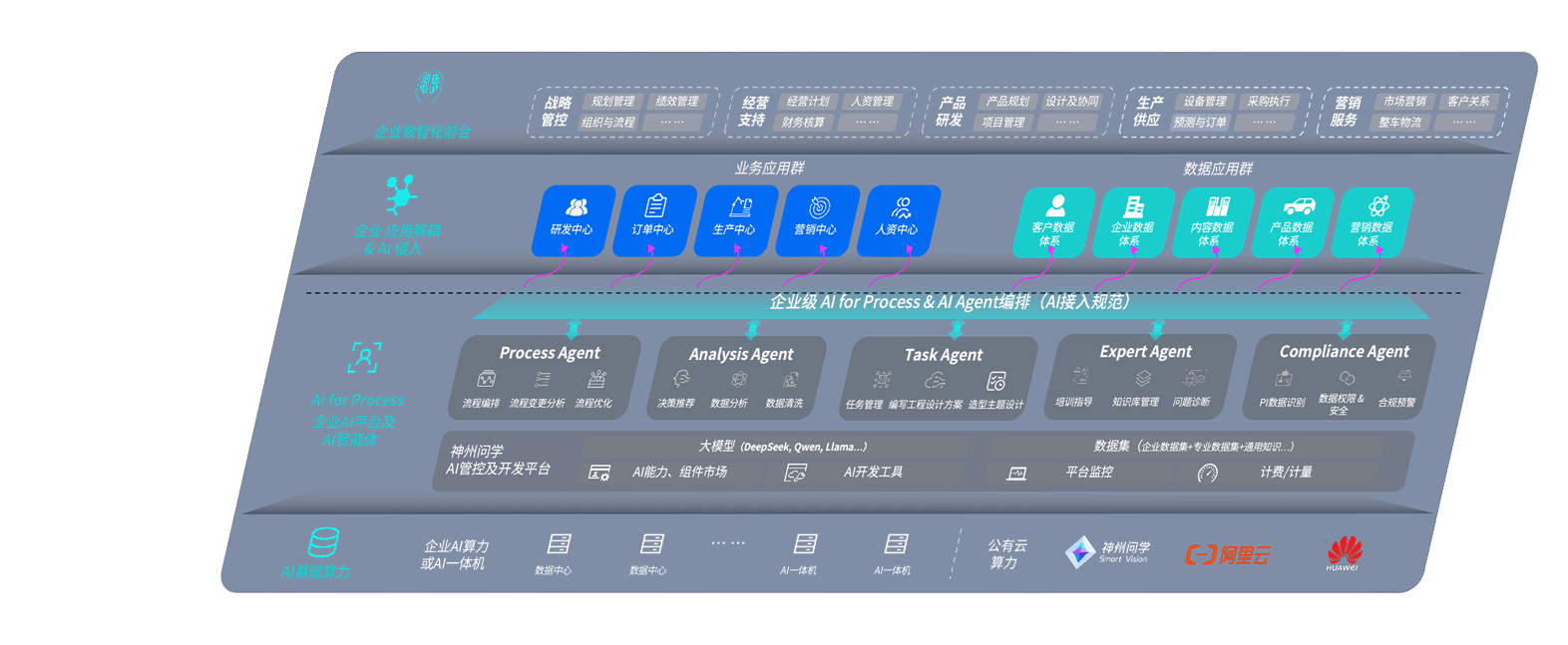bv伟德国际1946问学智车解决方案是一套基于AI技术的汽车行业智能化系统,,,,覆盖从底层算力到顶层AI应用的全栈方案。。。方案由算力层、、模型层和应用层组成:算力层,,,,方案支持多种一体机配置,,,具备云端灵活部署、、、多云适配以及动态优化计算资源的能力;模型层,,,bv伟德国际1946问学平台版提供了企业级AI应用一站式构建与管理平台,,支持基于后训练强化技术的汽车企业专属模型的训练、、评测和运营;应用层,,bv伟德国际1946问学DeepSeek版提供包括超级员工、、、智能招采、、、智能营销、、、、智能客服、、、、AI for BI等一系列解决方案,,可助力汽车行业实现数字化转型,,,,让管理更智能、、、、响应更敏捷。。。